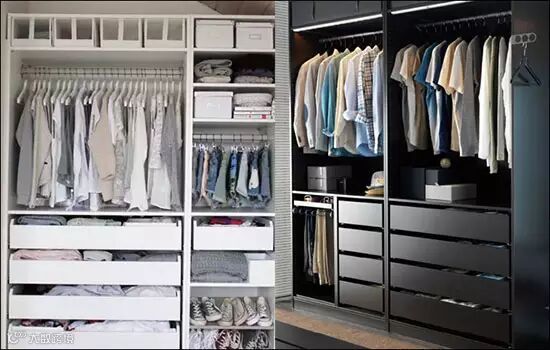 比起之前的透明抽屉,它更整洁,也可以方便你看到抽屉里都放了什么。你也许已经发现,衣柜内部的抽屉,重要的是,要浅,太深的抽屉无法一目了然,最终结局就是全部翻乱。另外,我们提倡多使用抽屉,抽屉的好处是可以拉出来,你不用探身进去,也不需要伸手进去乱摸。