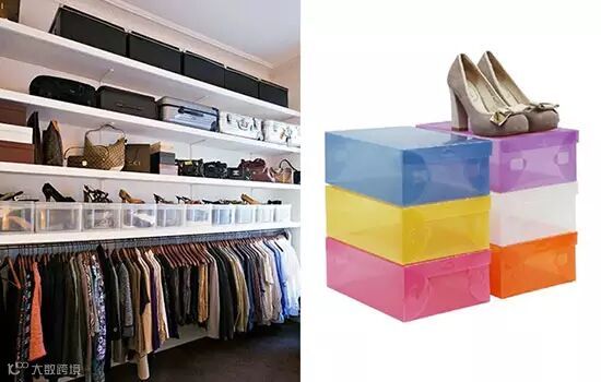 鞋子可以放到透明鞋盒中在衣柜里摆好,出门要穿哪双鞋就一目了然啦~