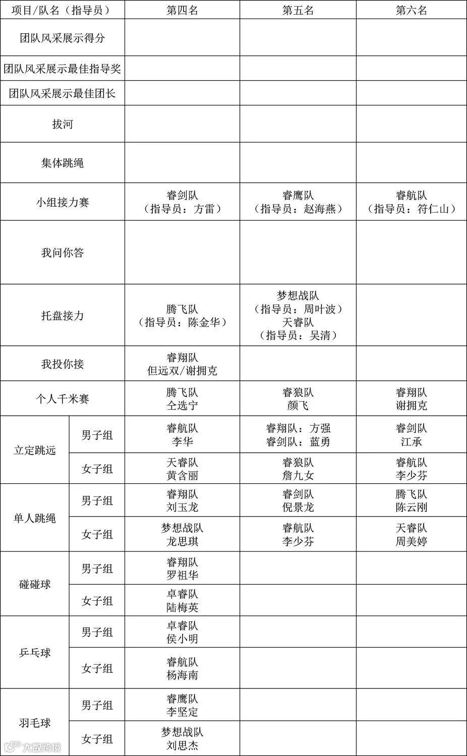 没有完美的个人,只有完美的团队,凝聚力就是团队团结力量的核心,只有凝聚力才能打造出有活力的团队、有战斗力的团队,十支临时组建的战队,经过一段时间训练后,通过整齐划一的队列方阵、有条不紊的上场秩序,诠释出了团魂的意义,为此次运动会增添了浓墨重彩的一笔,进一步增强了团队精神,磨砺了黛柏睿人意志品格。
