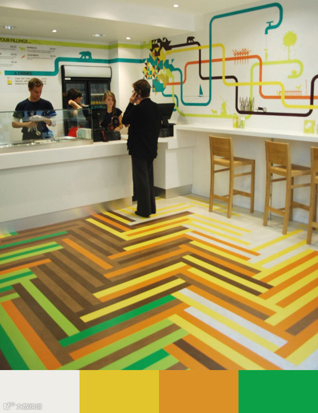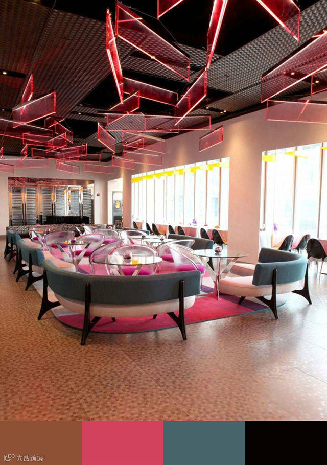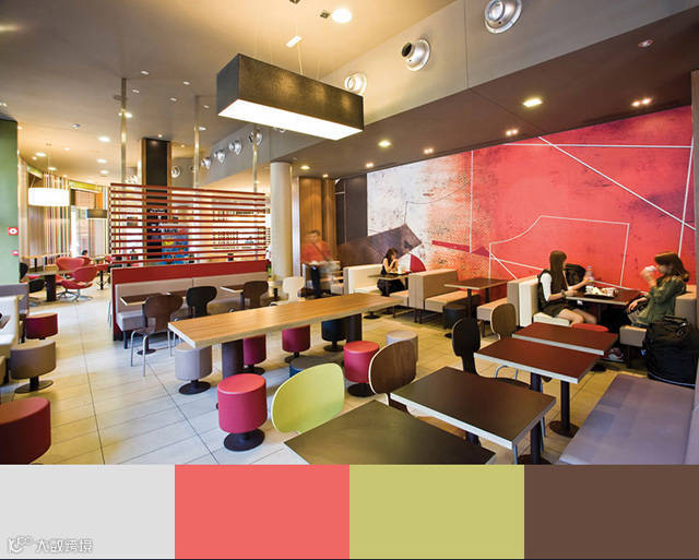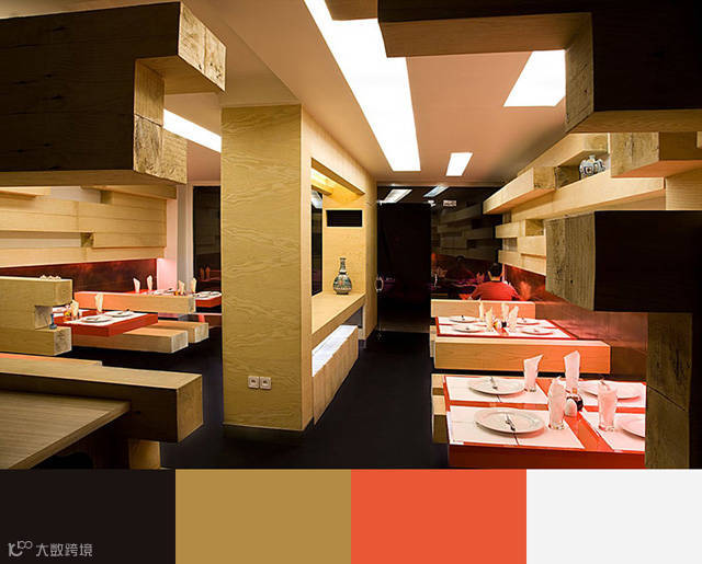 颜色可以影响甚至决定人们在餐厅里面的体验,选取合适的配色方案,让用餐的客人视觉上得到最好的体验,这是餐厅室内设计当中必须予以重视的一个方面。
