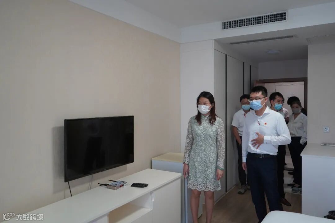 何敏丹总经理一行前往了科通大厦,检查韩国籍员工入境后疫情防控工作,深入一线、实地走访了监控室、大堂、隔离通道、客房等重点区域,现场提出了对工作流程、内部防疫管理、人员及防疫物资配备的相关要求。