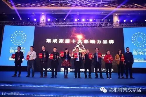 2015年11月16日,“集势·成大市”2015年度集成家居影响力年会在浙江嘉兴逸林·希尔顿大酒店隆重举行。这是一场集成家居行业的年度盛会,200多名企业家和媒体朋友欢聚一堂,共同见证了本场盛典的举行,集成家居行业各大奖项的荣誉也在这里诞生。欧柏特集成家居继获得2014年度集成家居十大影响力品牌后,又再次蝉联2015年度集成家居十大影响力品牌,同时还获得首届集成墙面十大影响力品牌。