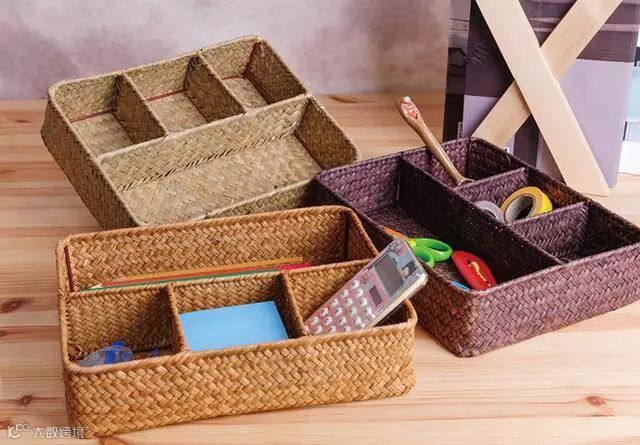 现在这种藤编的桌面零碎收纳框非常流行,是微收纳中最常见的一款。它的特点是分格、无盖,专收零碎小物,无论是清洗或使用起来都非常方便顺手,这也是它被广大MM接受的重要原因。