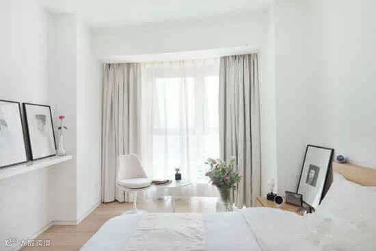 有人说,最简单的装饰就是最好的装饰。纯白色的墙面是最基本、最百搭的墙面装饰颜色,同色系的椅子和床品让整个空间呈现出纯粹的美感,原木色的床头柜让房间里多了自然的气息,而墙面搁板上的月季花,则让纯粹的空间多了一分野趣与美感。