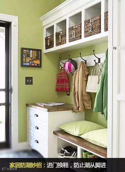 要保证家居在回南天的干爽,家居防潮首要就是防止潮气入侵。除了窗户,潮气也可能从门带入,特别是通过人脚底带进来。因此,进门前最好更换鞋子,将鞋底擦干,亦或是在门口铺上报纸或旧衣服地毯等,尽量避免把水汽从外面带到室内。