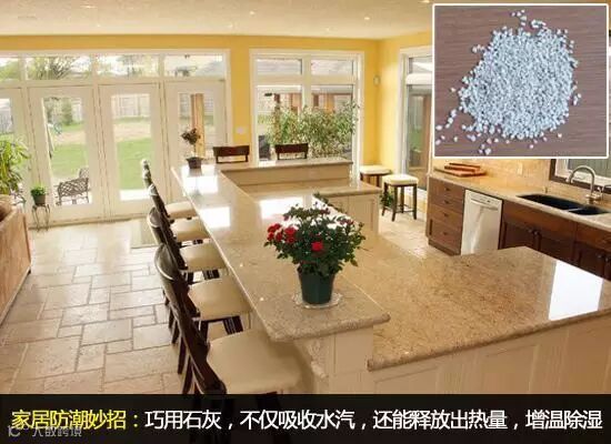 1公斤生石灰能吸附空气中大约0.3公斤水分,算得上良好而简单的吸附剂。此外,石灰还有一个重要的作用就是,它不仅能过吸收空气中的水汽,还能释放出热量,对室内有增温的作用,从而减少水汽凝结。