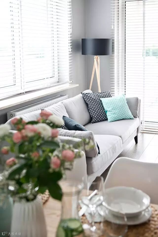 当然,这除了两种颜色搭配外,室内的配饰也起到了很大作用。在欣赏的同时,我们也可以学习到很多软装的搭配,和家居的选择哟!