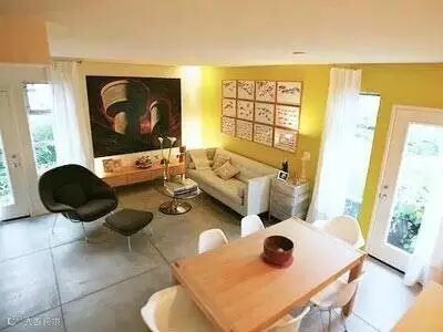 8、多功能客厅。长桌解决一切需要用桌问题,吃饭、看电脑、工作、画图。