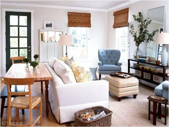 2、小转角沙发+单人扶手椅+小茶几。年轻人的小公寓这样做似乎是不错的选择。