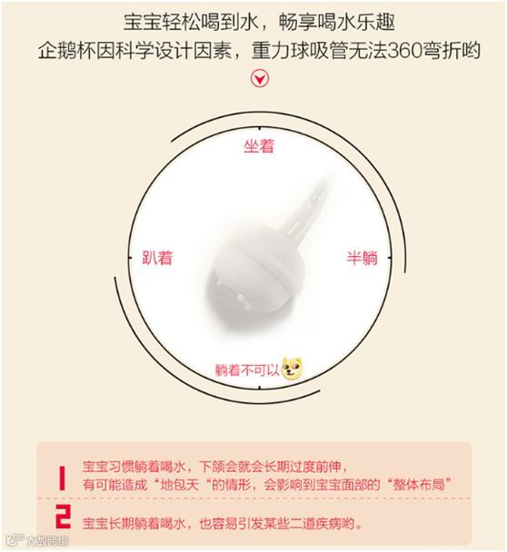 宝宝轻松喝到水,畅享喝水乐趣,企鹅杯因科学设计因素,重力球吸管无法360弯折哟。