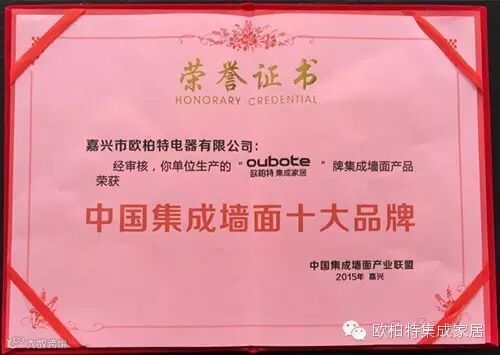 中国集成吊顶墙面产业联盟成立,欧柏特继当选为副理事长单位后,近日又再次荣获“中国集成墙面十大品牌”称号!