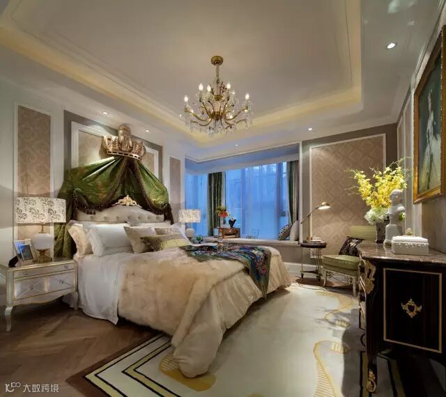 ▲主人房色调迷情、富有层次,奢华品纹样图案融合欧式创作元素相得益彰,报春花艳丽的金黄欢快的跃动着。在光影中传递着美好的感性体验,奢享空间独具华贵气质。