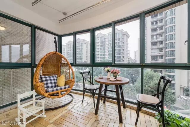 ▲阳台采用了浅色地板,如置身室外一般,坐在竹藤摇椅上,喝上沏好的茶 ,时间仿佛静止一般。