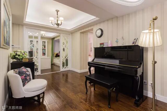 ▲书房采用了白色简约移门,栅格中流露出淡淡的法式田园风味,时钟记录 着这一切。