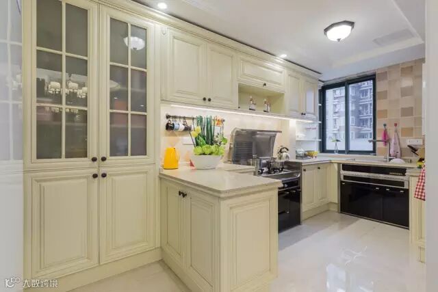 ▲厨房沿用了纯白的色调,仿佛置身于罗马假日,细细一看跳跃的墙砖,又 让人眼前一亮。