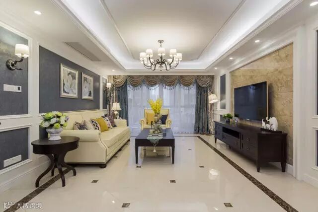 ▲客厅与休闲区之间地面的转换十分自然,摇身进入了黑白琴键的世界。