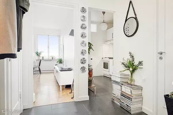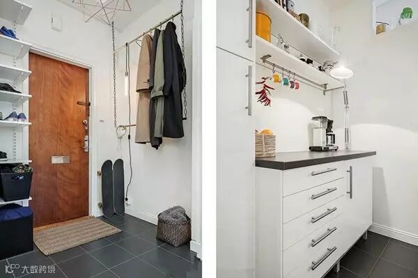 玄关的简易衣架,看似简单,但是充满设计感,衣架上还接有一个小型灯柱,既实用,还增添了一些时尚性。