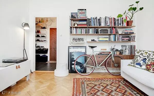 波西米亚风的地毯,不规则的木质书架,配合着唱片机里缓缓歌声。复古、怀旧的氛围,让你想把脚步慢下来。