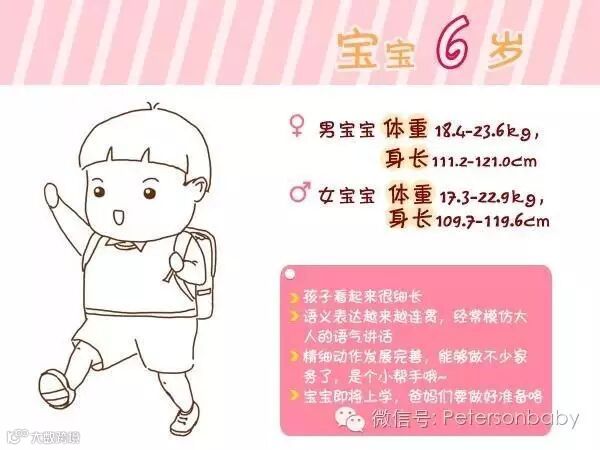 导读:父母通常对孩子的身高很关注,生怕会矮别人家一头!宝宝出生后从第一周到6岁生长指标图,包括身高、体重、行为等,
