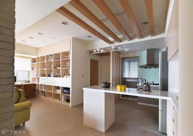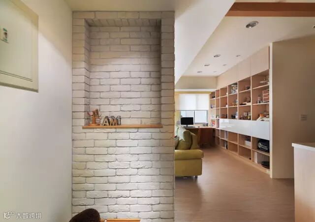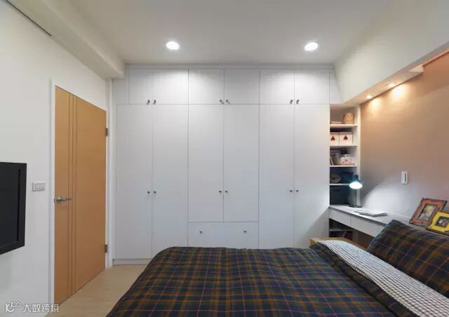 ▲ 客厅旁的储藏室用白色门隐藏,同时在门片上刻画小夫妻的名字缩写A&M,有木有很浪漫的感觉