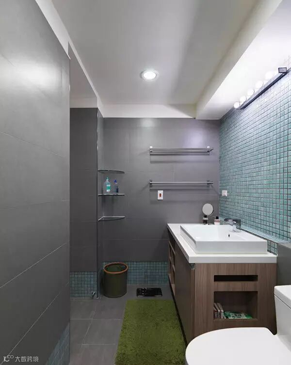 ▲ 灰色调卫生间和绿色马赛克搭配,清新淡雅