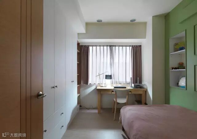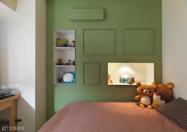 ▲ 次卧绿色的一面墙增加了清新感,同时壁龛也很实用