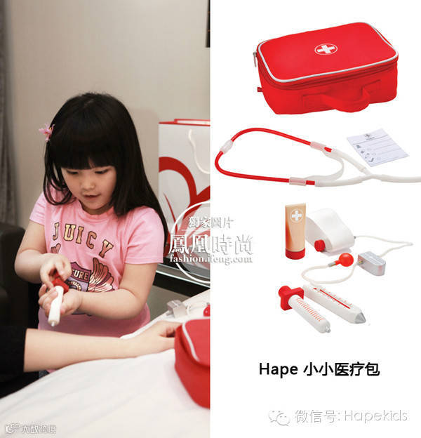 可爱王诗龄为感冒的凤凰时尚小编拿Hape小小医疗包治疗