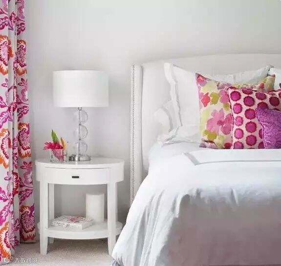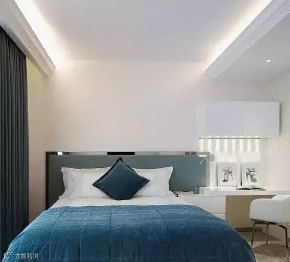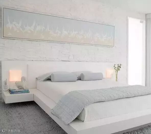 白色再加白色,将会带给你强烈的视觉冲击,白色在灯光的照射下,会使你的房间看起来更大。把这条规则运用到房间的一切,从床到墙壁,再到天花板!