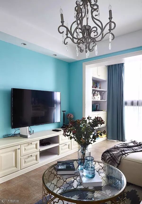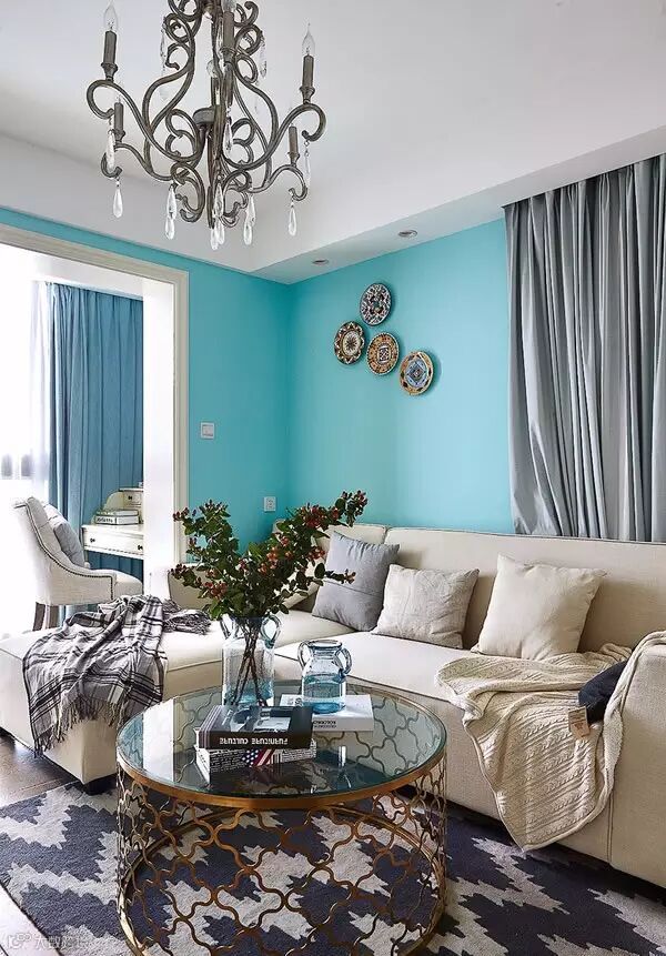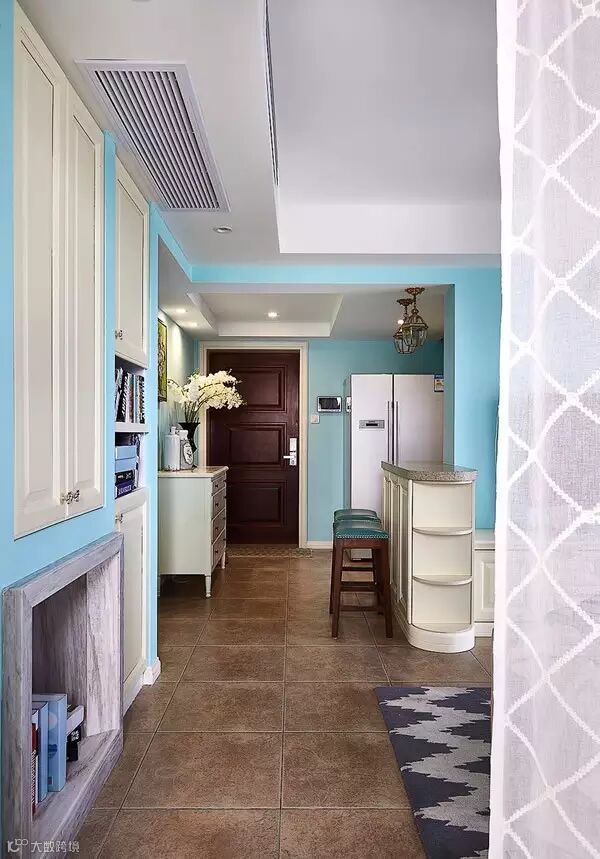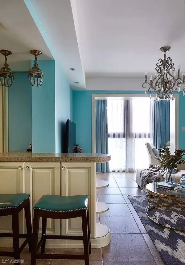 ▲ 一楼以Tiffinay蓝为墙面主色,配合象牙白的家具