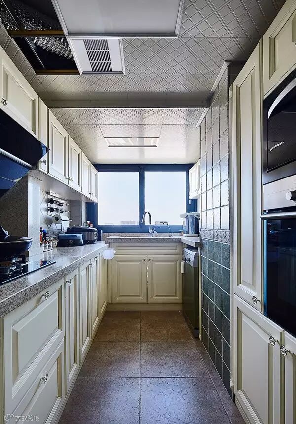 ▲ 橱柜和家具一样采用象牙白色的模压门