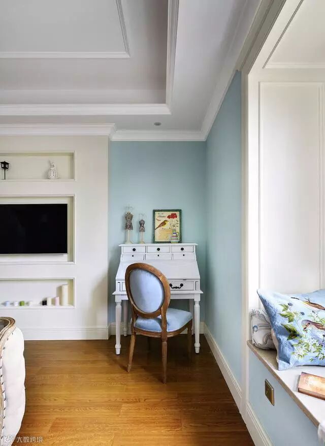本设计主要采用了两大色彩基调,即米色系和淡蓝色系,暖暖的米色给家带来了温馨感和归属感,而蓝色则给人带来清爽的感觉,这两大色系的搭配和点缀贯穿整套房子,时而蜻蜓点水,时而泼墨渲染,巧妙得在对比中寻求到了平衡感。