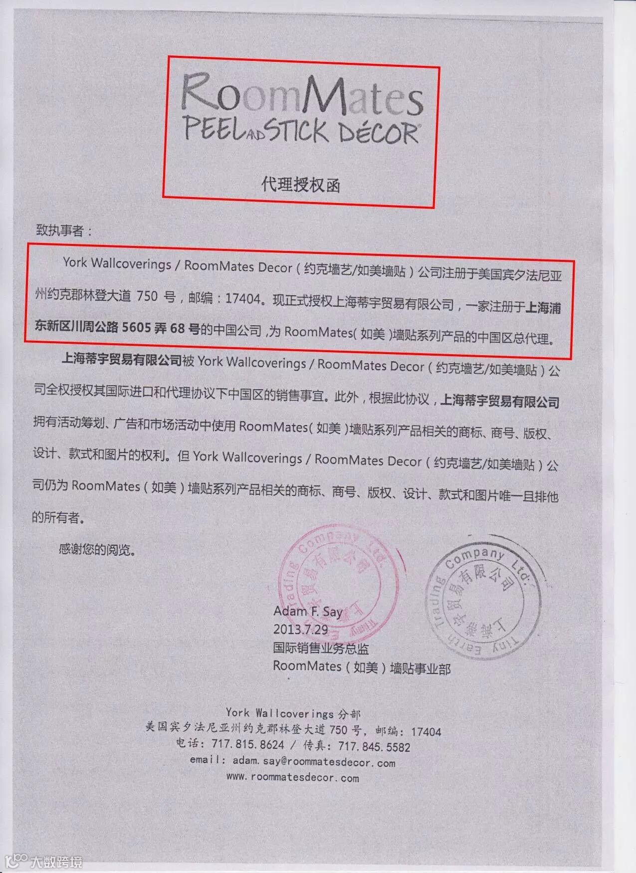 RoomMates授权蒂宇,其中的约克墙纸有限公司就是制造RoomMates的公司~
