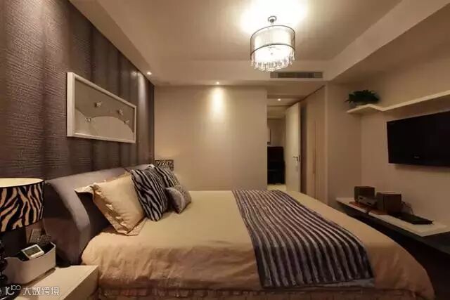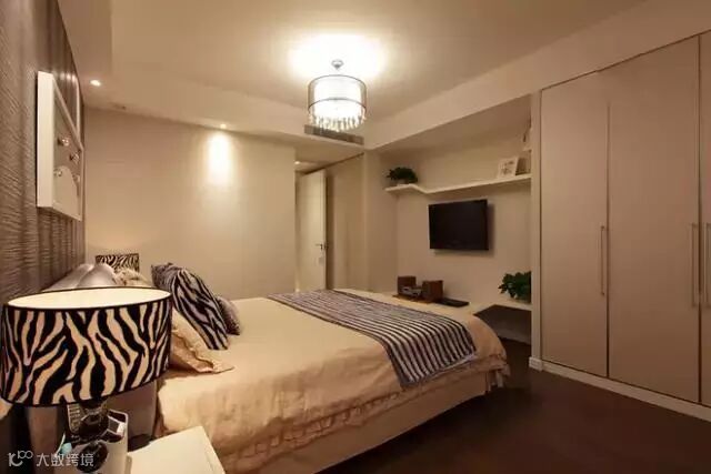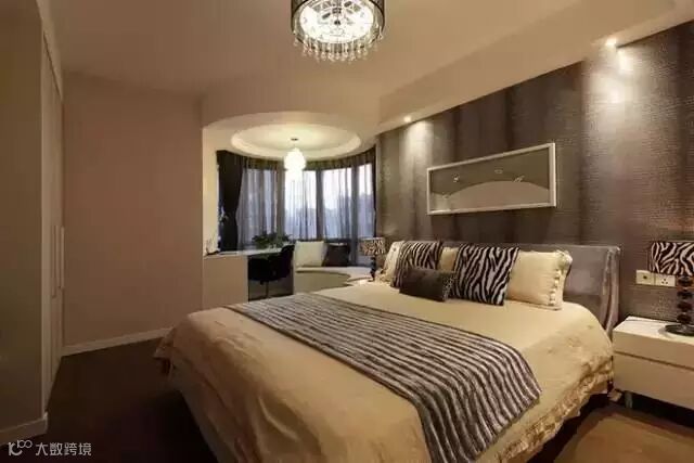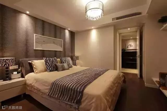 导读:这款卧室木地板装修效果图中,床头背景墙选用咖色暗色纹理的软包材质,带来空间的典雅精致之感。深色纹理的地毯平铺