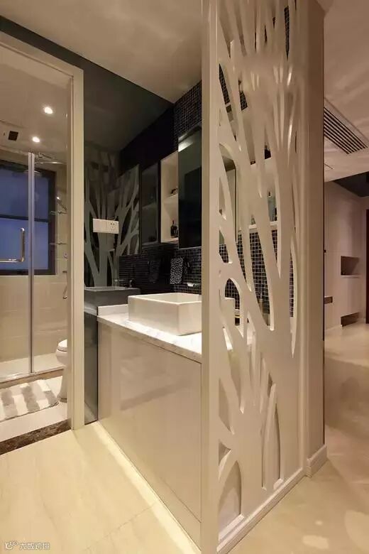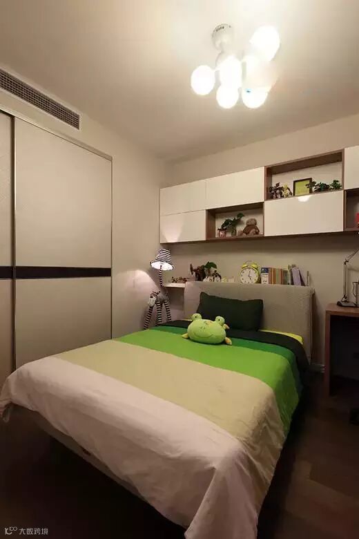 这款卧室木地板装修效果图中,床头背景墙选用咖色暗色纹理的软包材质,带来空间的典雅精致之感。深色纹理的地毯平铺以及实木复合地板的自然纹理的展现,格局间的醇厚温润得以实现。也许生活中的本来样子可以如此。