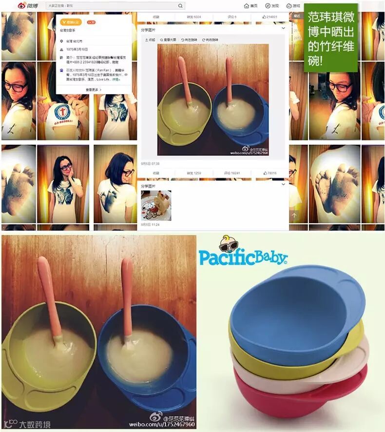 9月6日7时38分,台湾著名歌星范玮琪在微博中晒出了Pacific Baby竹纤维碗的图片,并受到了粉丝们的喜爱!