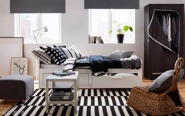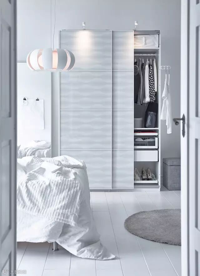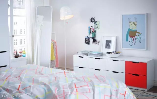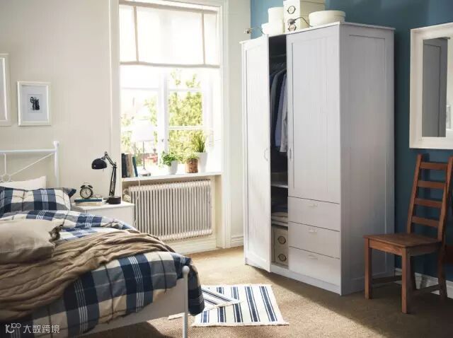 ②卧室设计有重点:卧室除了美观,更重要的是功能性和舒适性。如何定义一个好卧室?就是晚上10点到早上8点这段时间你住的舒不舒服。而宜家强大的收纳功能可以让卧室看上去更加整洁。比如宜家风格的衣柜(下文多图展示)可以节省空间。宜家风格的床饰(下文多图展示)很舒适。总之卧室设计的重点可以在床和衣柜上下功夫。