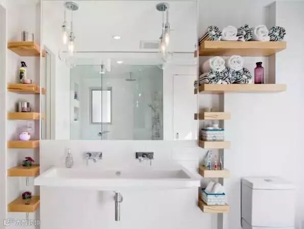 还可以像上图一样,计算精确,测量好各个物品的尺寸,充分利用每一个空间,每一个物品都归置整齐,就算卫生间再小,也不会显得太乱。