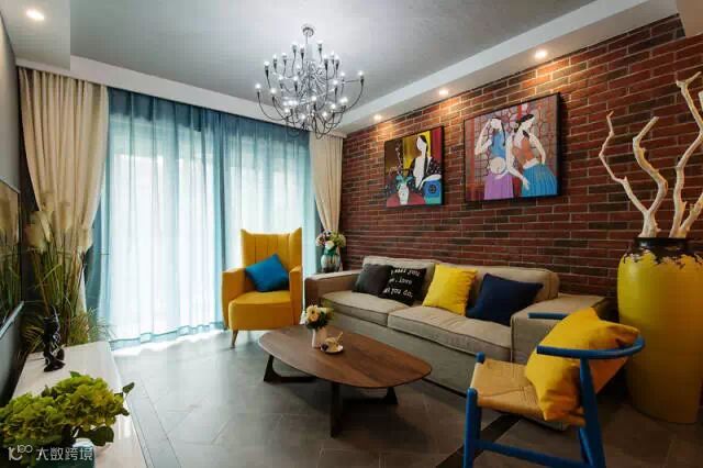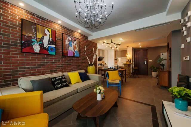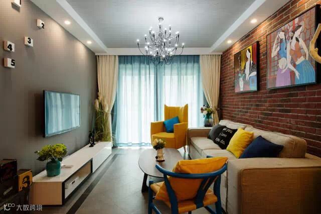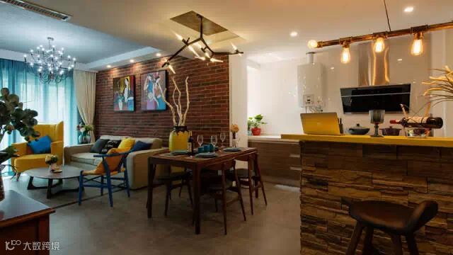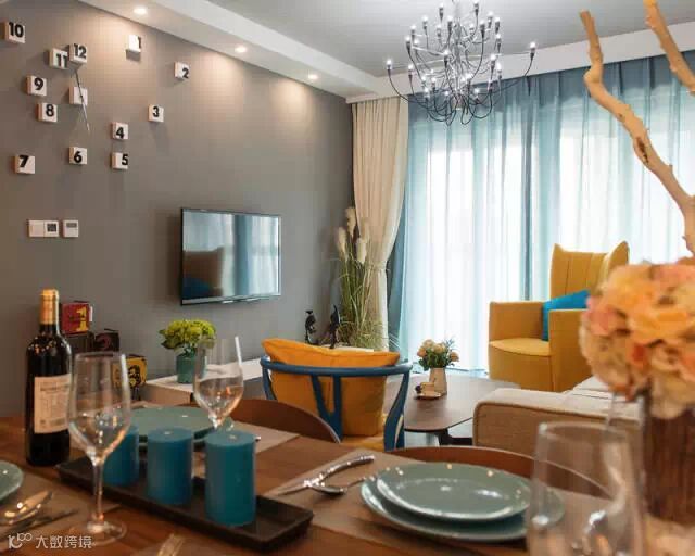 面积80平米,原本进门为一个封闭的厨房区域餐厅是放置冰箱的地方,设计师大刀阔斧的把进门所有的墙体整体拆除,做成开放式的厨房,使得空间得以释放,在餐厅北侧还设计进去一个鞋柜和一个小巧的吧台,业主对设计师提的要求是简约不简单想做出一套跟别人家不一样的设计。所以客厅在整体灰色的背景色下加入了很多跳跃的色彩,个性的灯具,大胆的装饰画还有丰富精致的软装摆件营造出与众不同的整体感。