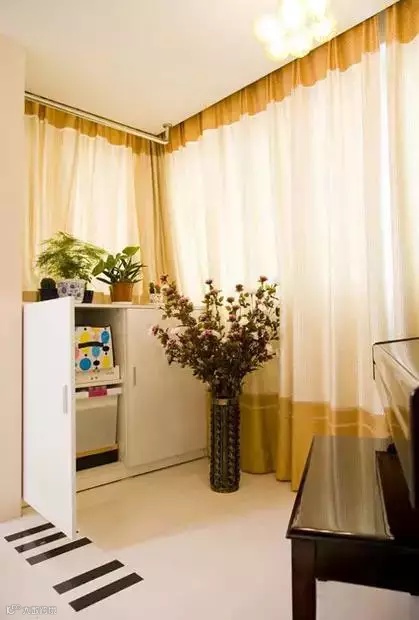 阳台上还放下一台钢琴,为了配合钢琴,在铺地砖的时候还特意加入黑色砖,制作出黑白键的效果