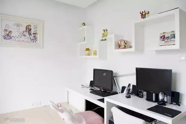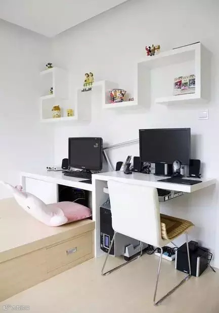 一侧做了写字台可以两人同时上网,墙上的空间也不浪费