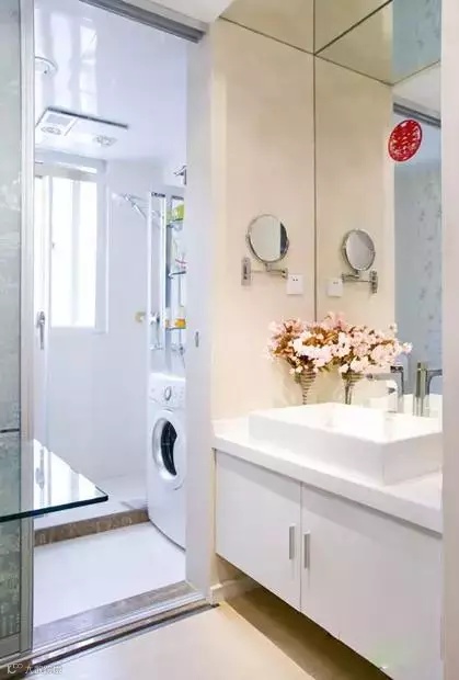 洗手台背景是整面镜子,镜子在小户型中可以增加视觉空间感