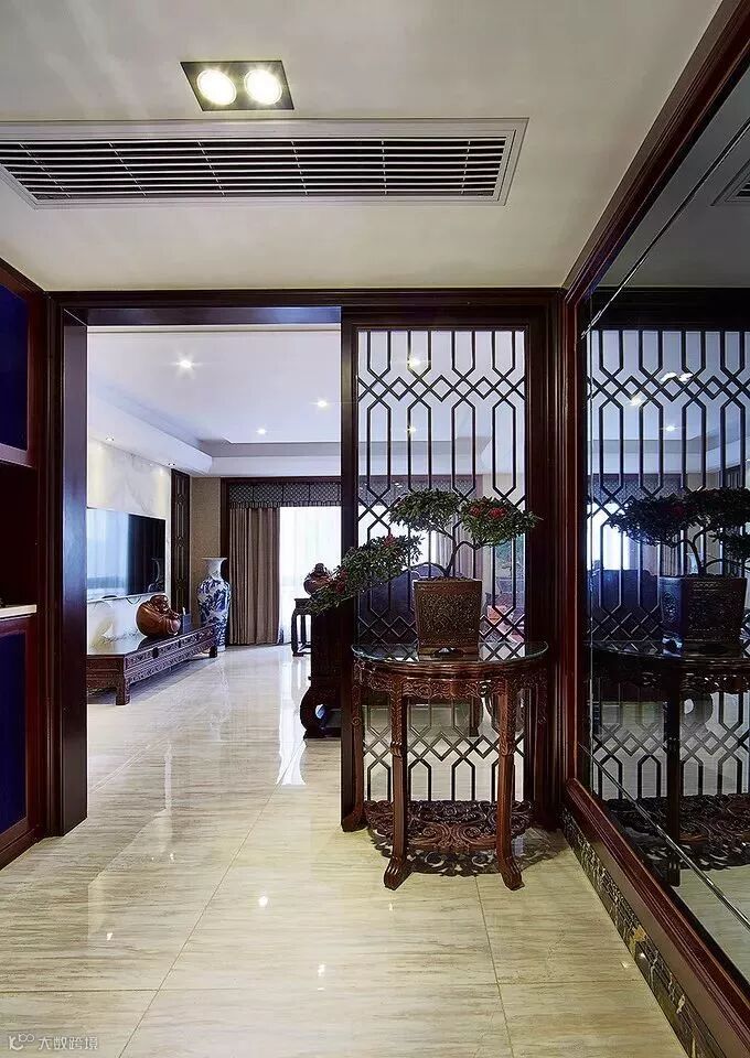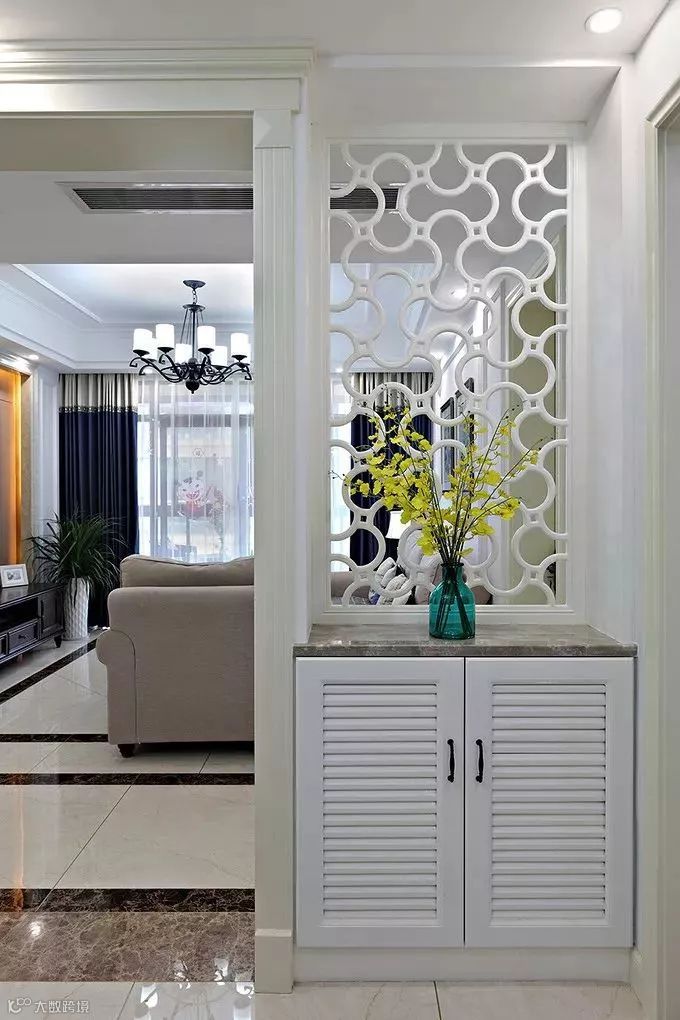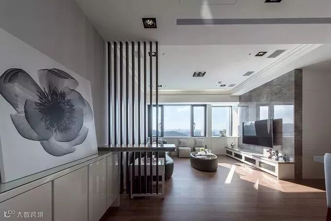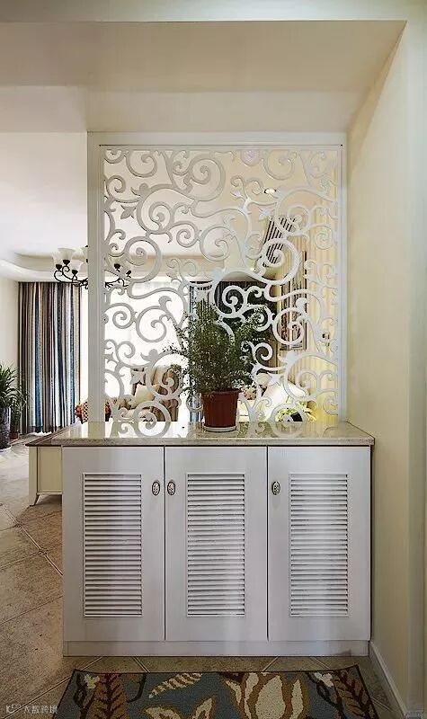 光是屏风的话有点华而不实,那么就可以考虑一下把屏风跟收纳组合起来,下方收纳上方屏风,既实用又不会显得浪费空间或太暗。