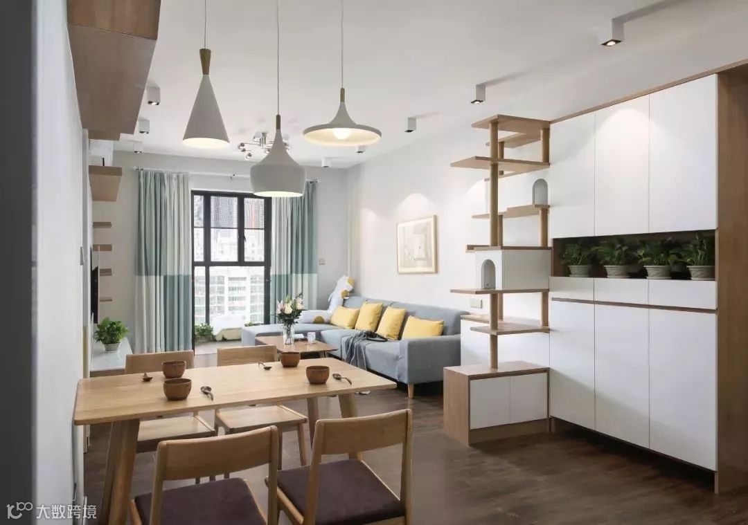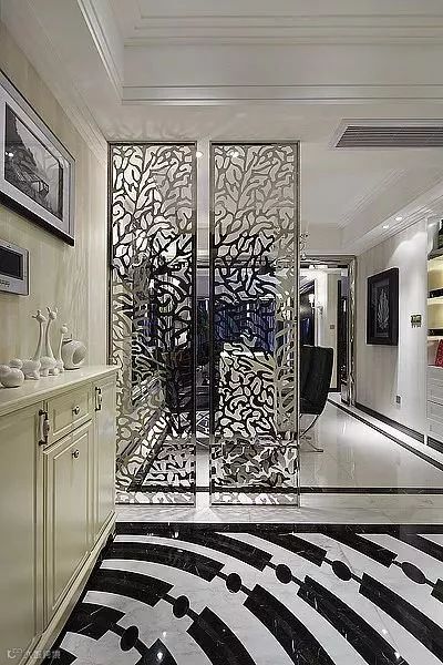 如果担心被客人一进门就对整个空间一览无遗,那么不妨在客餐厅中间的区域,或则进门侧边的位置装一道屏风,让空间之间有一定的隐私。