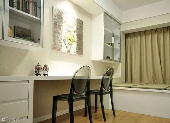 房间的墙身顶部是经常被遗忘的储物空间,如果设计一个造型简单、颜色相近的吊柜,就可以解决储物空间不足和外观问题了。这样的储藏空间里,适合摆放一些平常收集的各种纪念品或者不太用到的物品。
