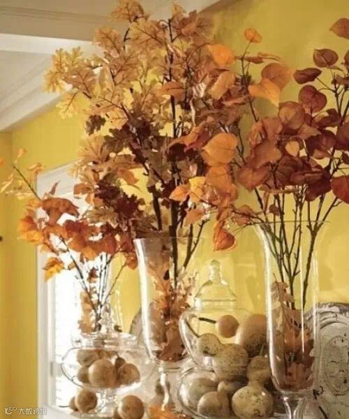 5.秋天为什么是金黄色的,因为大自然是这种颜色的,可以去大自然中找一些黄了的树枝,装饰你的家,也可以让人觉得暖暖的。
