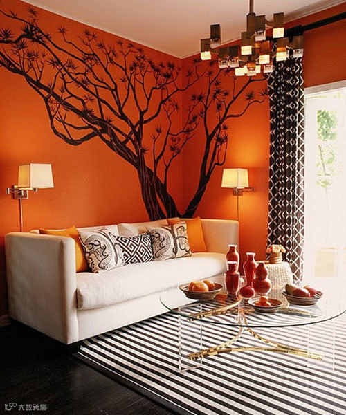 3.素色的客厅里,购置几个金黄色、枚红色的抱枕、或者换上橘黄色的沙发布等。