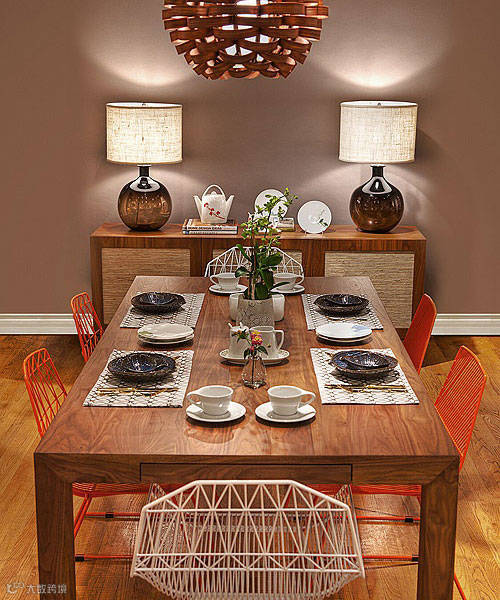 6.餐厅可以一换夏日清凉的餐桌和凳子,此时原木的桌子最具有温度的厚重感。