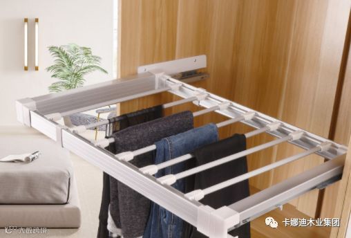 还有伸缩式衣裤架,有拿取也很方便,且更加实用。
