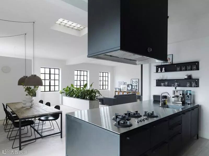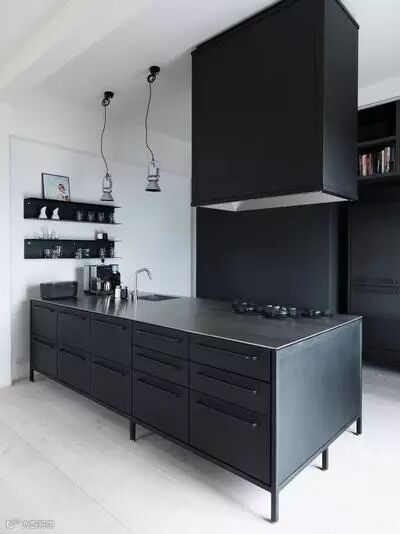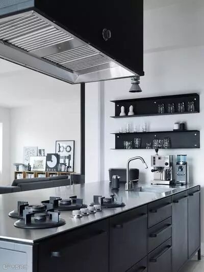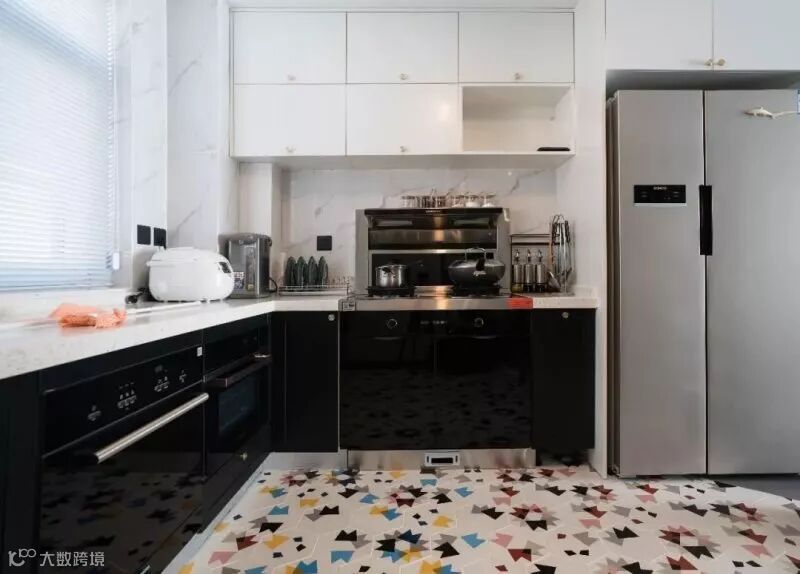 厨房L型布局,黑白混搭大气奢华,不仅好看也更实用。
