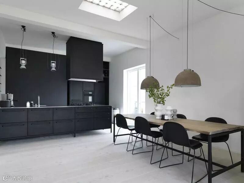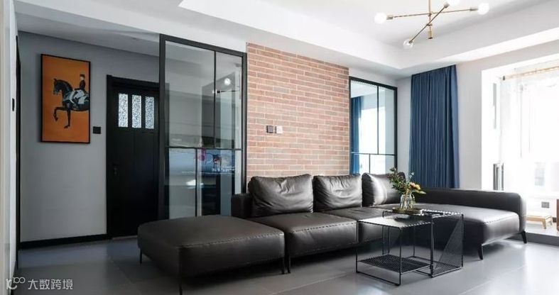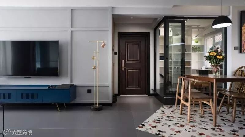 黑蓝色调混搭,将墙体改成玻璃隔断,增加玄关与餐厅的采光与通透度。